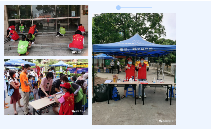 在活动现场,一个个身穿“开元自动化志愿者”红色马甲的身影穿梭忙碌,搬桌子、布置展位、现场指引、游戏裁判、发奖品、与小朋友互动... ...开元自动化志愿者们给活动主办方、家长和小朋友们留下了深刻印象。